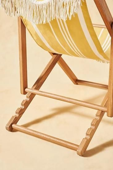 ビーチやプールサイドでのんびり過ごすのに最適なシートは、丈夫なチーク材のフレームと、自然なリクライニングをサポートするキャンバス製のスリングで構成されています。